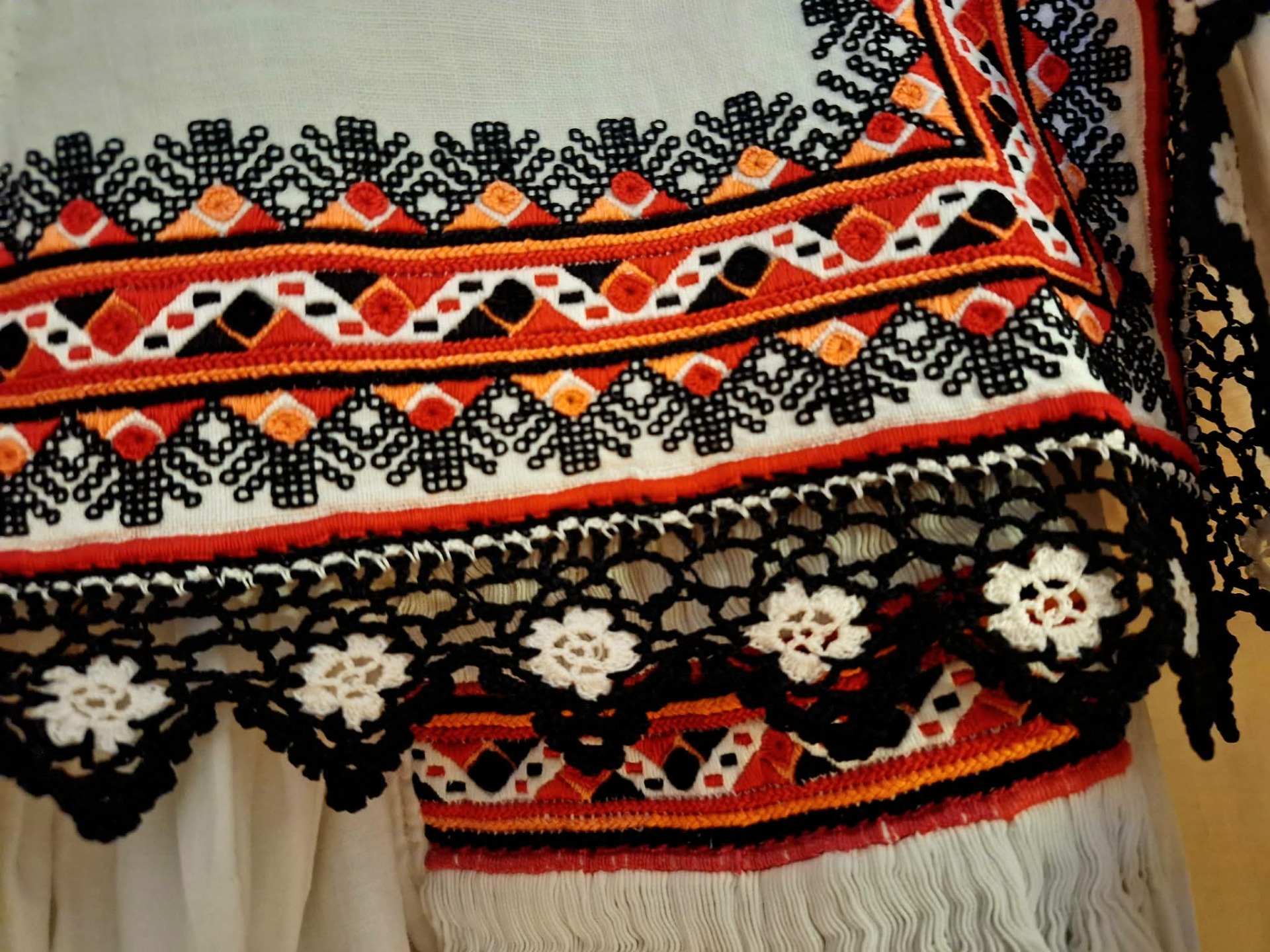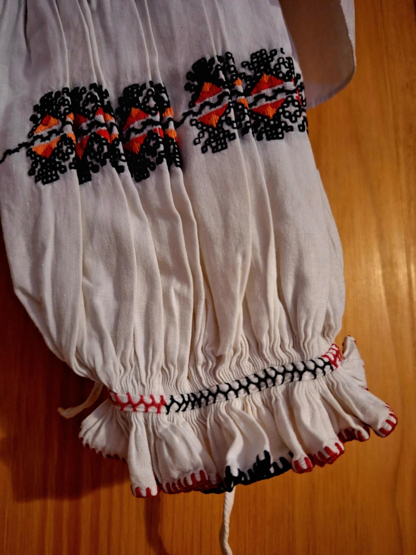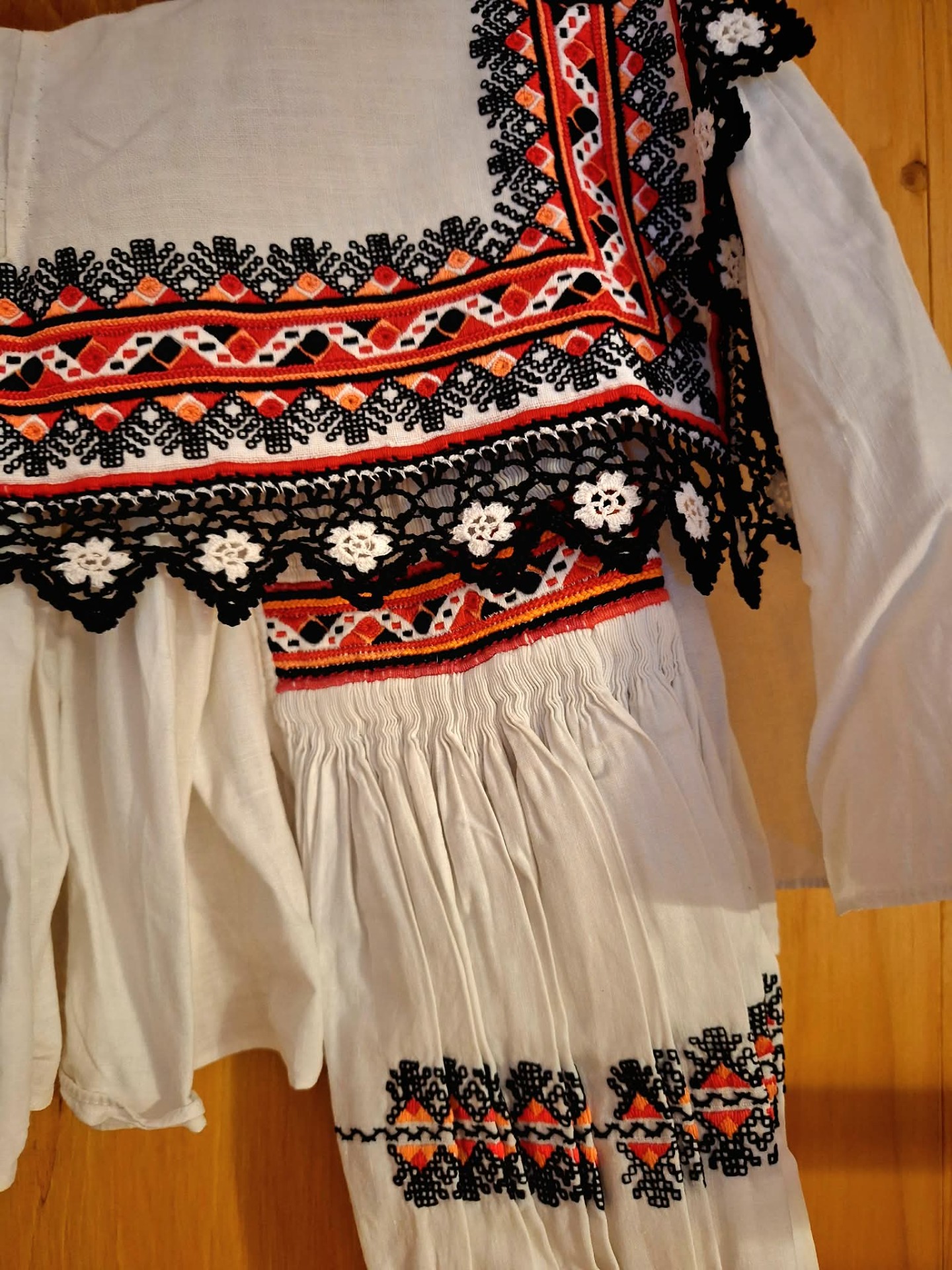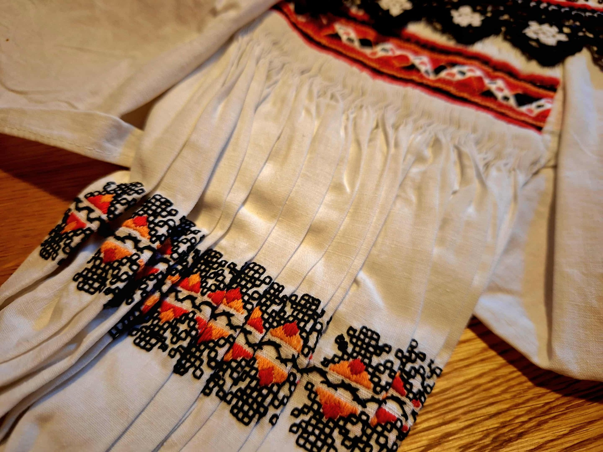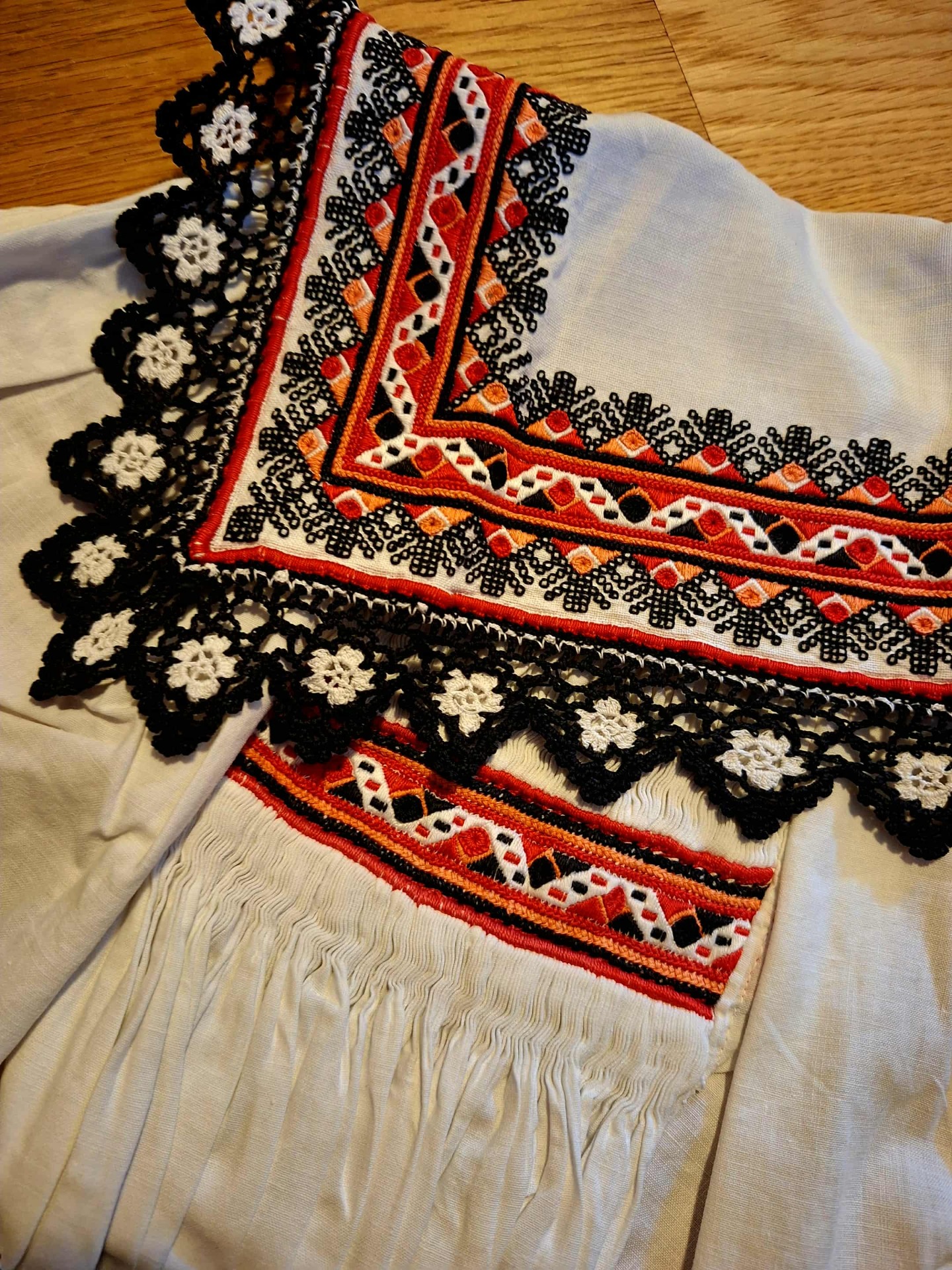 Pěkné černostrakaté rukávce, krásná ruční výšivka, bohužel sešívaný obojek, zohledněna cena, dalo by se opravit. Výšivka "pres rukávy"