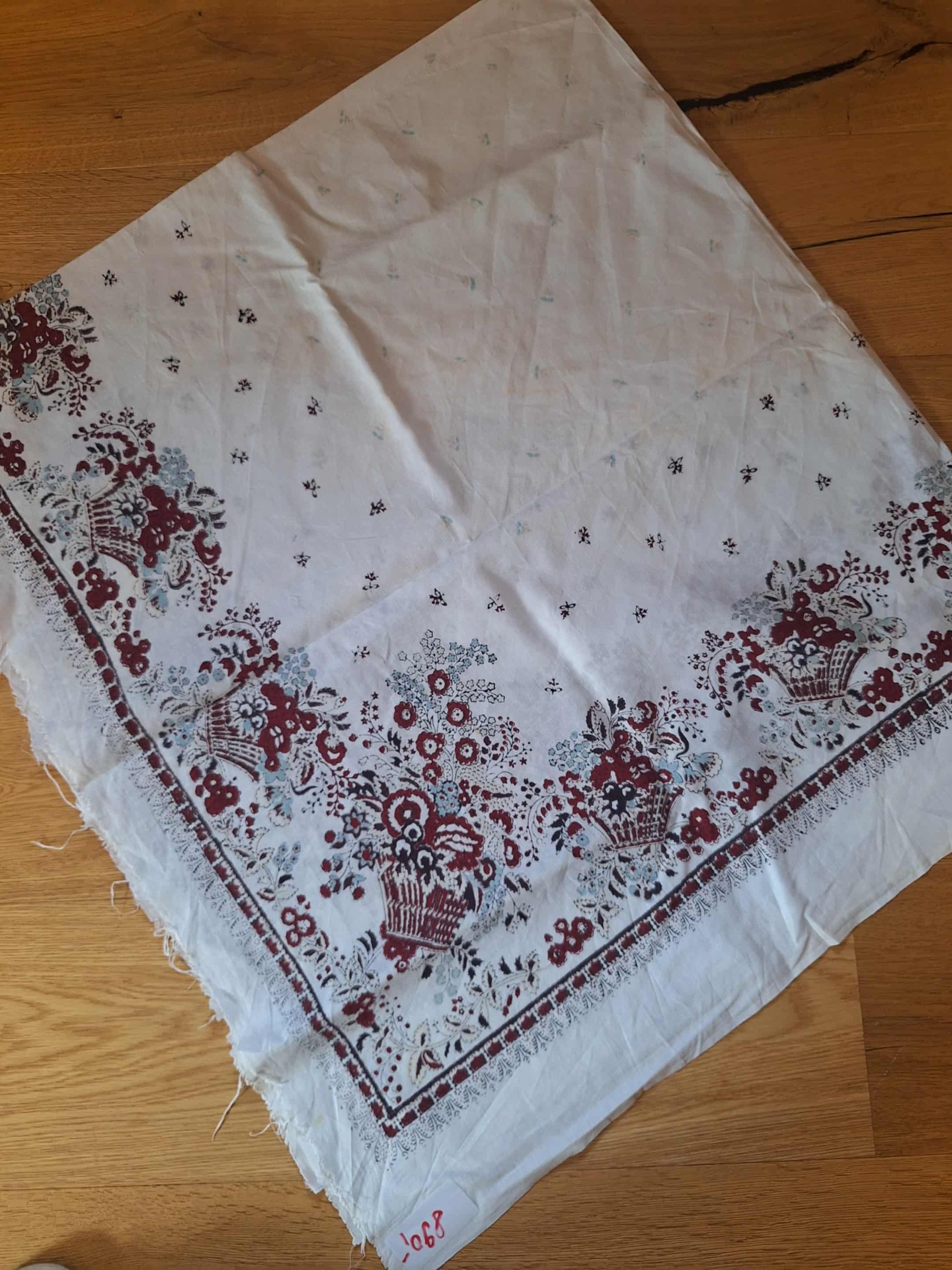 Starý lipský šátek košový, velmi pěkný, vypraný, má bledší střed, jemné kvítečka, bordura krásně ostrý tisk, hezký košíkový vzor.