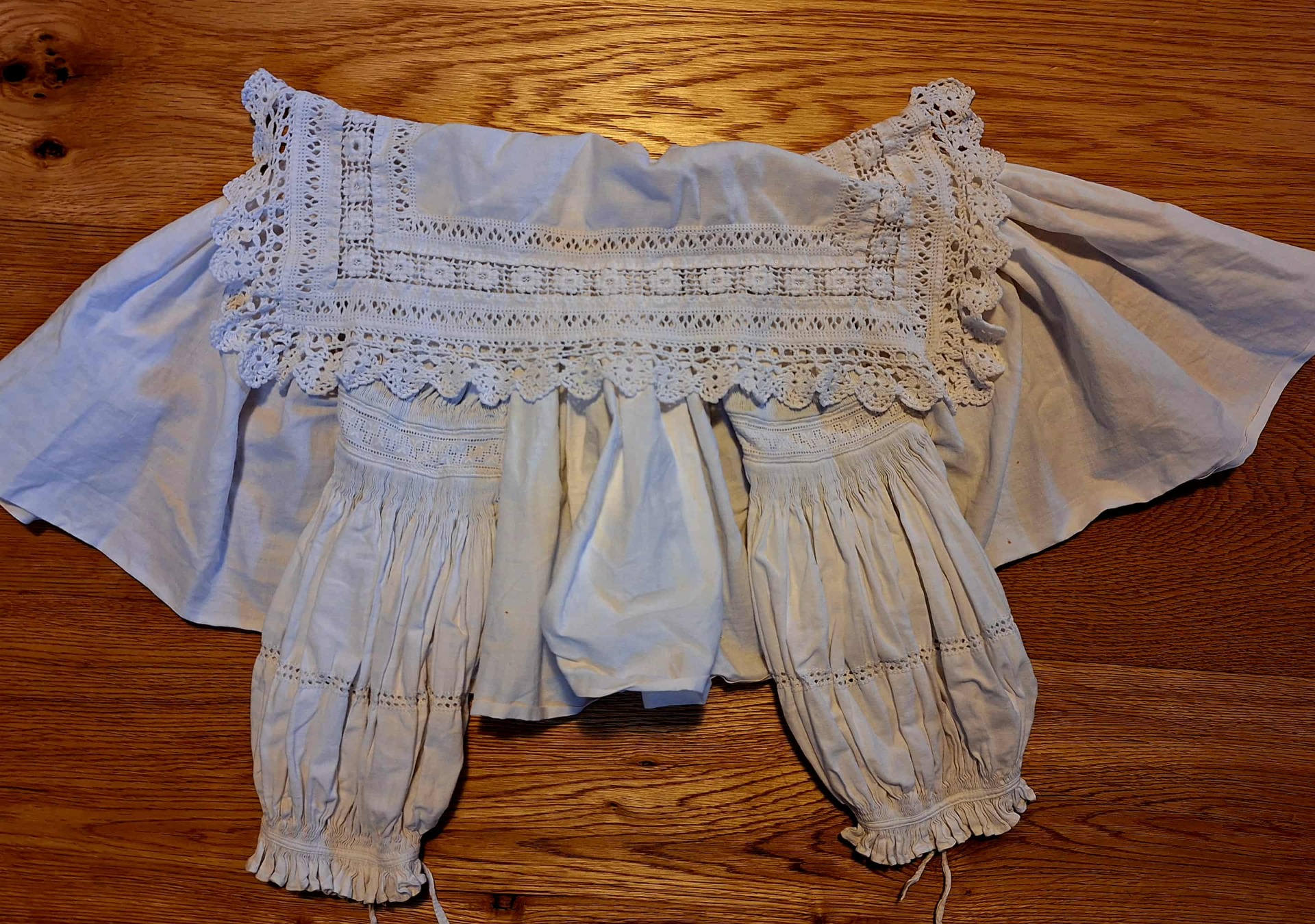 Moc pěkné starší rukávečky bílé s bílou výšivkou i hrachovinkou "pres rukávy".